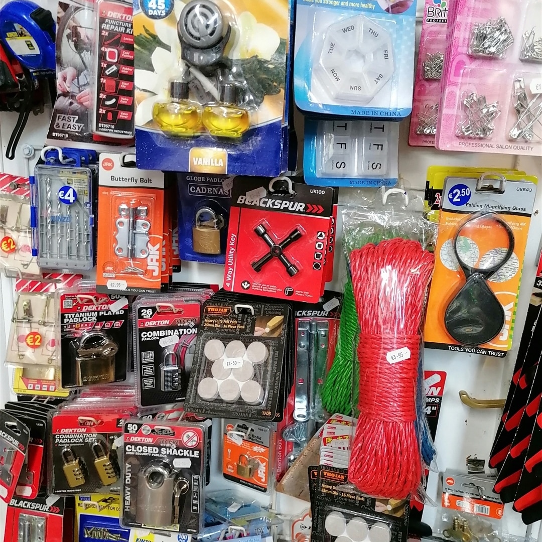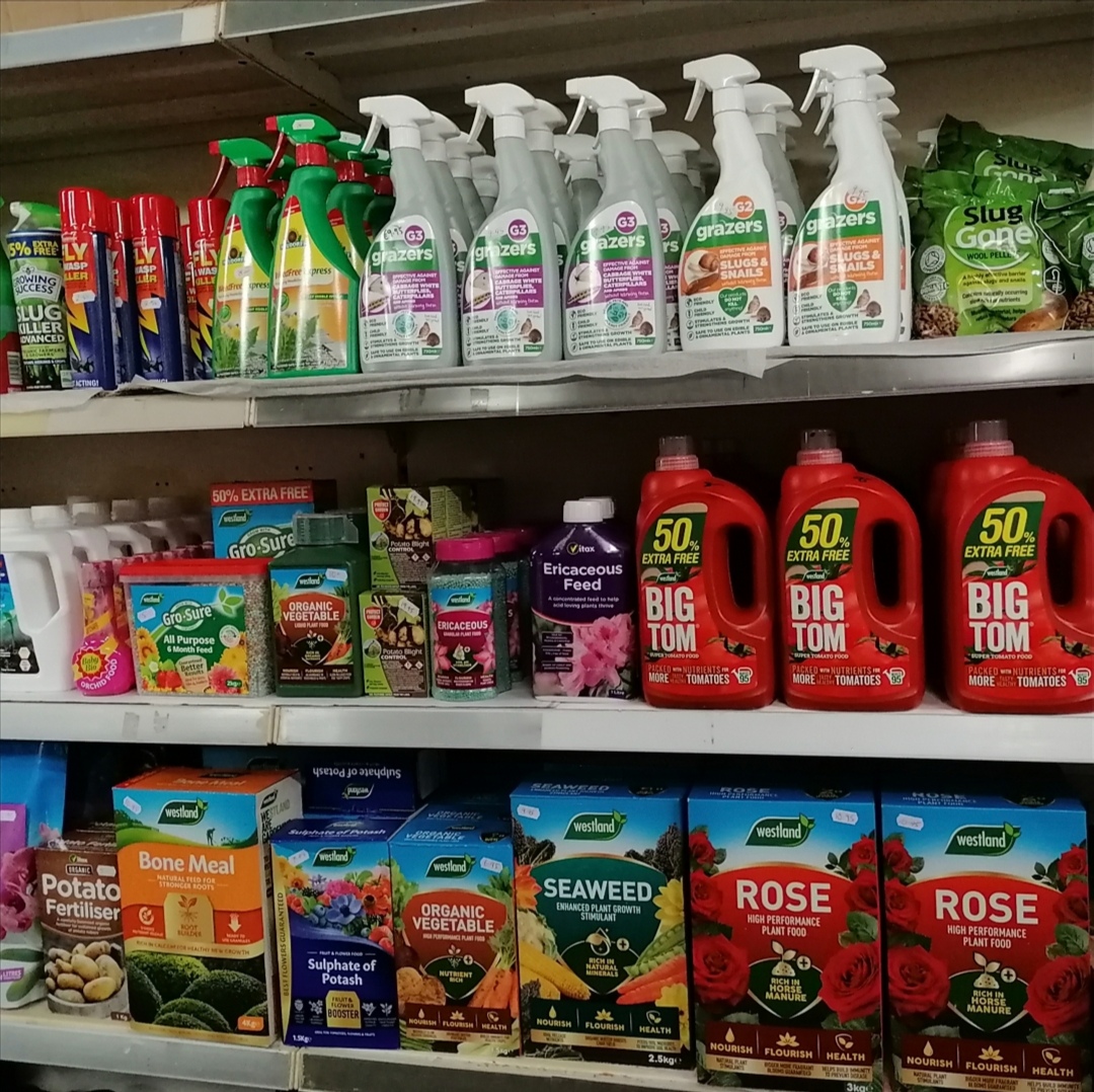 A selection of plant feeds, plastic containers, ornaments, garden accessories, ground cover, tools, windbreak, hardware, household, toys, pet supplies and more..