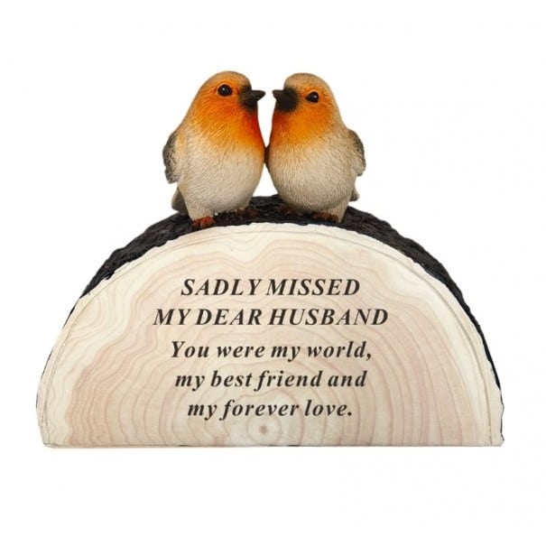 Stone Effect Resin Graveside Ornament with 2 Robin and verse decoration.